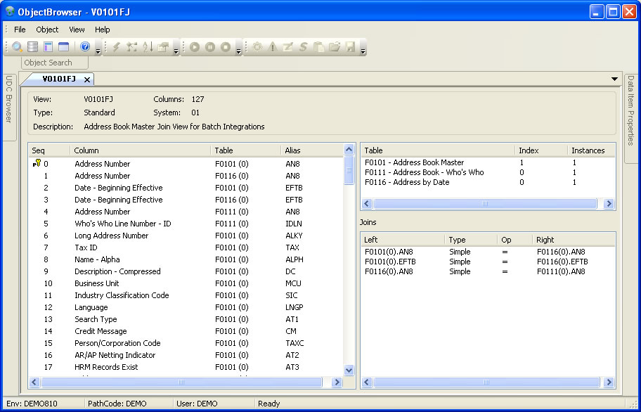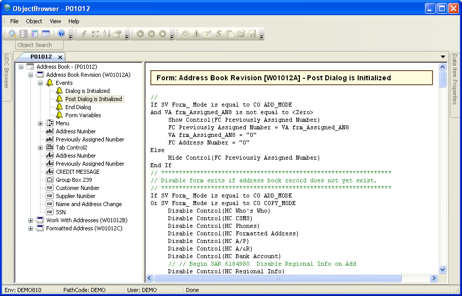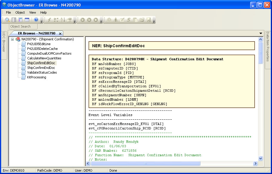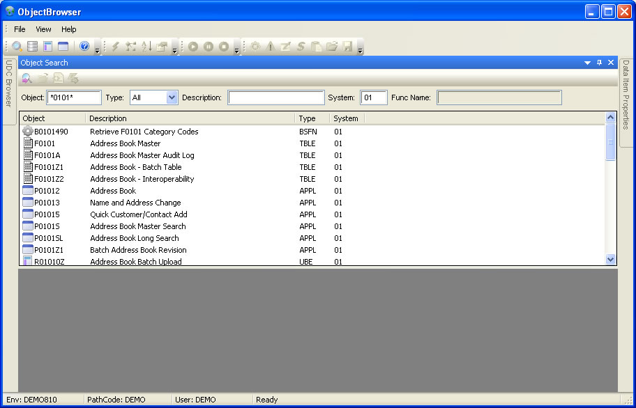 Object Browser for XE through E9.2. Examine and test JDE objects from a simple, intuitive framework.New Features are highlighted